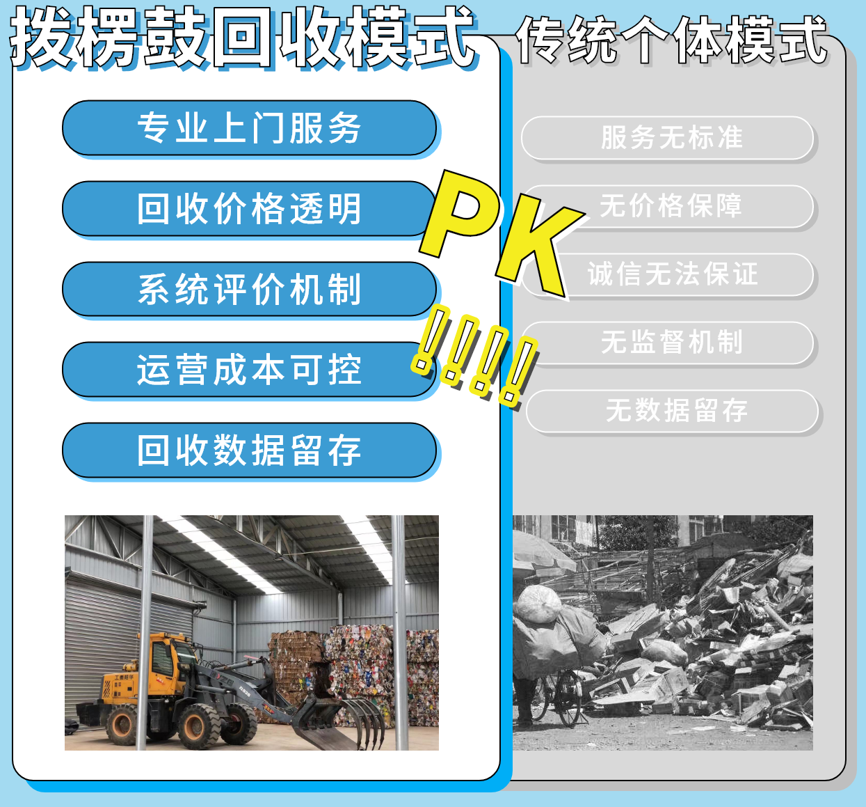 拨楞鼓O2O互联网再生资源回收凭条,是我公司深耕行业内多年,发现和发展的全新化、智能化、闭环化的前瞻性平台。作为全国互联网+回收商业模式的先行者,首先提出手机一点,废品变钱的服务理念,这一理念不仅实现客户对服务的预期,对价格早知道,对时间可控,还让市场上很多不良现象和用户说再见。 并且获得客户认可,还成为同类行业标杆。为客户带来更多的附加价值和服务体验