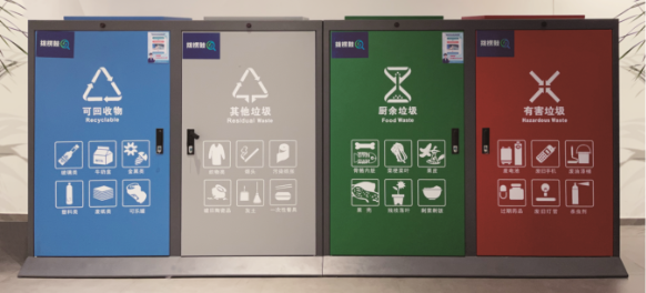 数据平台网格化数据分析后,可以将混投率较高社区推送给工作人员,在垃圾集中投放点工作人员进行桶旁督导;垃圾分类点具有垃圾分类知识感应播放功能;回收小哥上门回收过程中普及垃圾分类知识。